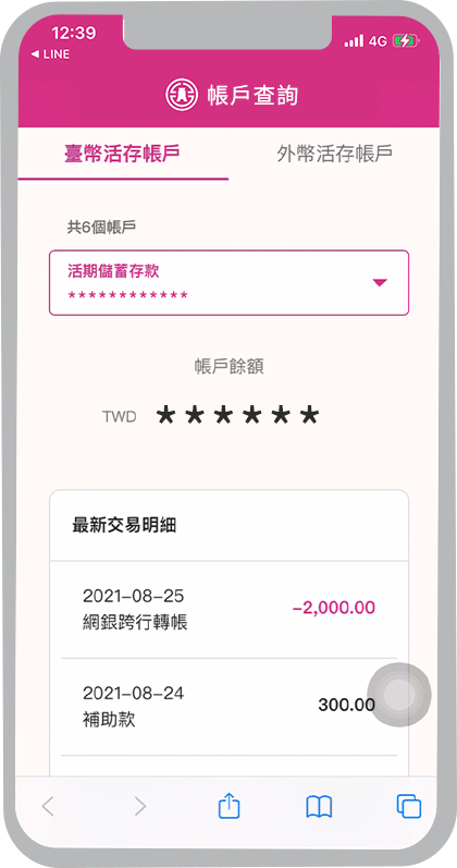 為了保障您帳戶資訊,綁定時需透過您留存於本行系統(交易代號V0063)中共同通訊之行動電話號碼進行認證,請您至本行各鄰近分行更新您留存於本行系統中之行動電話號碼;或登入網路銀行後進入「我的帳戶」>「用戶資料/使用設定」,選擇用戶資料選單內的「帳戶共同/個別通訊資料變更」,更新您共同通訊之行動電話資訊號碼後依網頁指示操作。完成更新後並重新進行綁定即可查詢帳戶資訊。